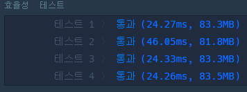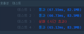 하지만, 다음과 같이 '효율성 테스트'를 통과하지 못한다.
