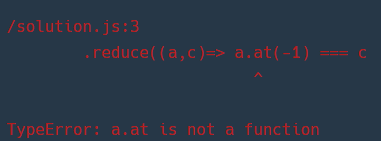 1. 첫 번째 요소 평가 시 [].at(-1) === c는 false이다.