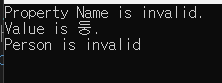 Console.WriteLine($"Property {property.Name} is invalid."