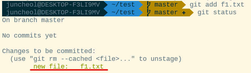 - git add f1.txt : 명확하게 추적하라고 명령한다.