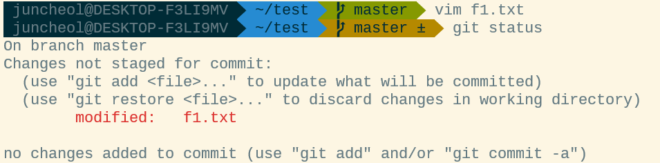 - vim f1.txt > 버전 관리 파일을 수정.