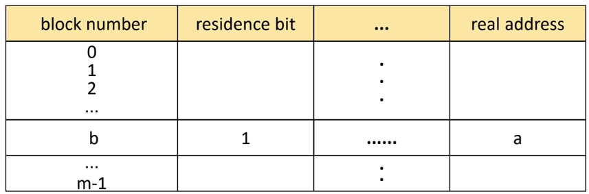 Residence bit : 해당 블록이 메모리에 적재되었는지 여부 (0/1)