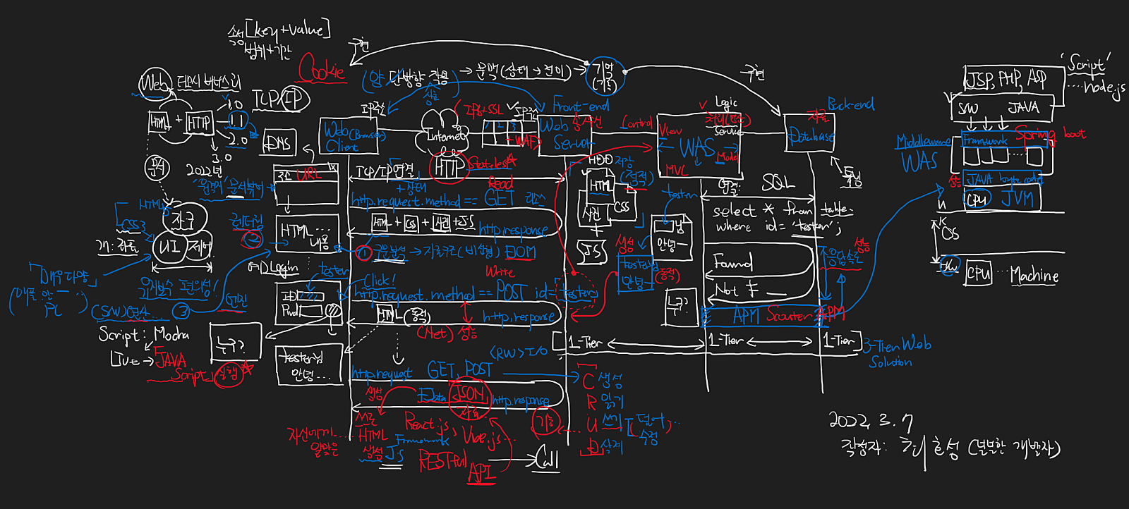 소프트웨어(JSP,PHP,ASP ...)를 위한 소프트웨어(JVM이 작동하기 위한 모듈 집합)를 미들웨어Middleware라고 한다.