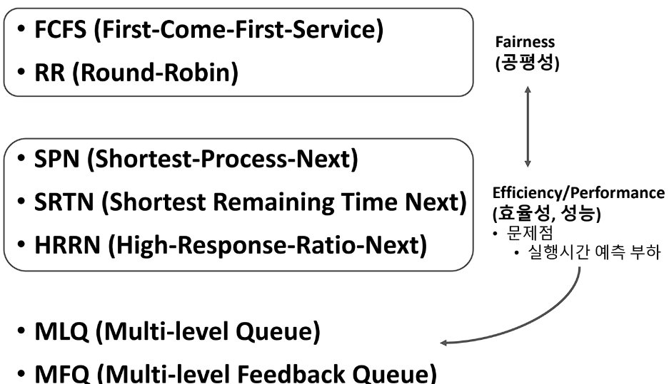 - 실행 시간 예측 기법 필요 (overhead)
