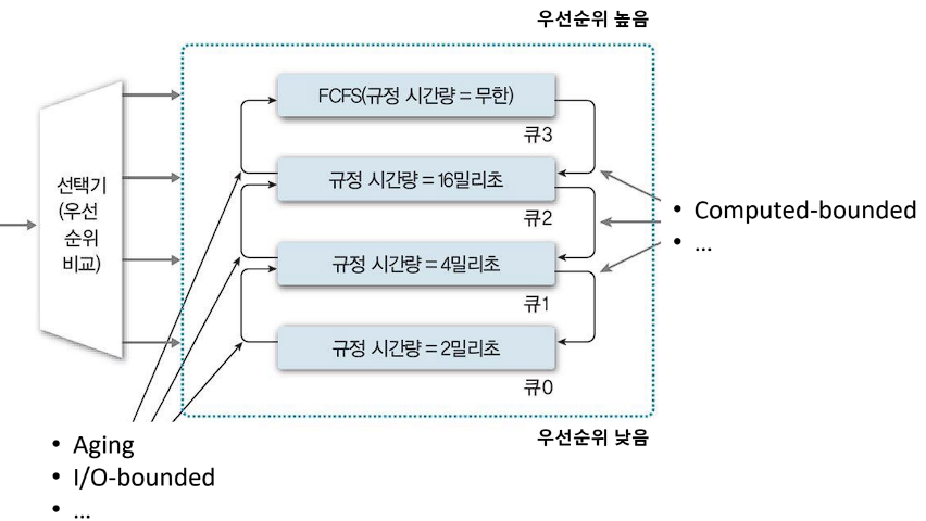 - 각 준비 큐마다 시간 할당량을 다르게 배정