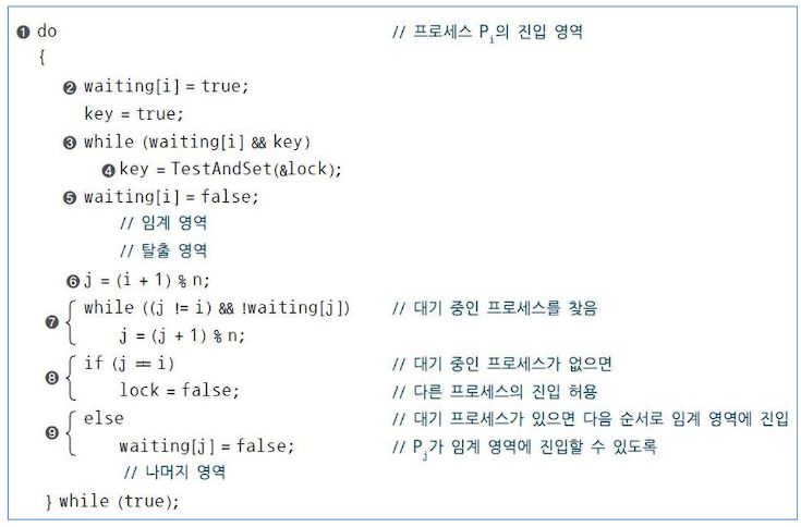3개 이상의 프로세스의 경우, Bounded waiting조건 위배