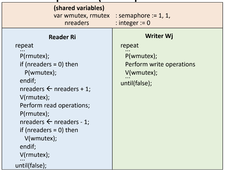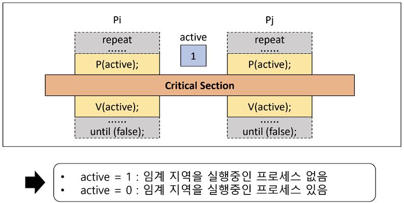 - 초기화 연산, P(), V() 로만 접근 가능