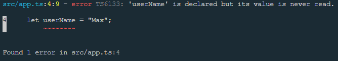 사용하지 않은 지역 변수나 전역 변수를 원하지 않을 경우 noUnusedLocals를 활성화(true)하여 에러를 발생시킨다.