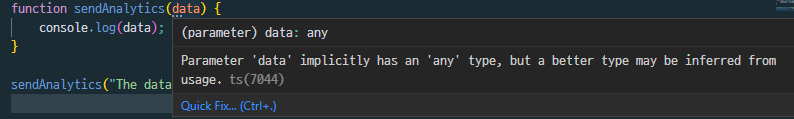 함수의 인자는 타입을 명시하지 않으면 에러를 발생시킨다. 하지만 변수의 경우에는 any 타입으로 추론된다. 왜 그럴까? 변수의 경우에는 '미리' 선언되기 때문에 any 타입으로 추론되지만, 함수의 인자는 '미리' 선언될 수 없기 때문에 타입스크립트가 any로 추론하면서 동시에 에러를 발생시키는 것이다. 이런 경우 에러를 유발시키지 않고 any로 추론하게 만들기 위해서는 strict 옵션중 noImplicitAny 옵션은 false로 설정하면 된다.