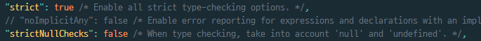 그런 체크를 해제할 수도 있다. strict옵션의 strictNullChecks를 false로 설정하면 된다.