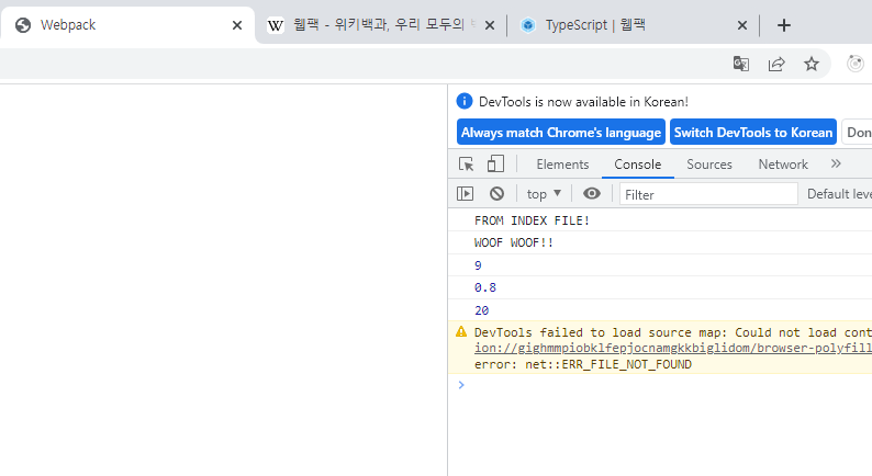 에러가 뜬다. 이유는 우리의 ts파일 안에 webpack은 이해할 수 없는(build 시점에 존재하지 않는) js파일이 명시되어 있기 때문이다.