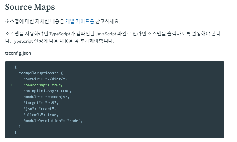 1. tsconfig.json 파일의 sourceMap을 true로 변경한다. (주석을 해제한다.)