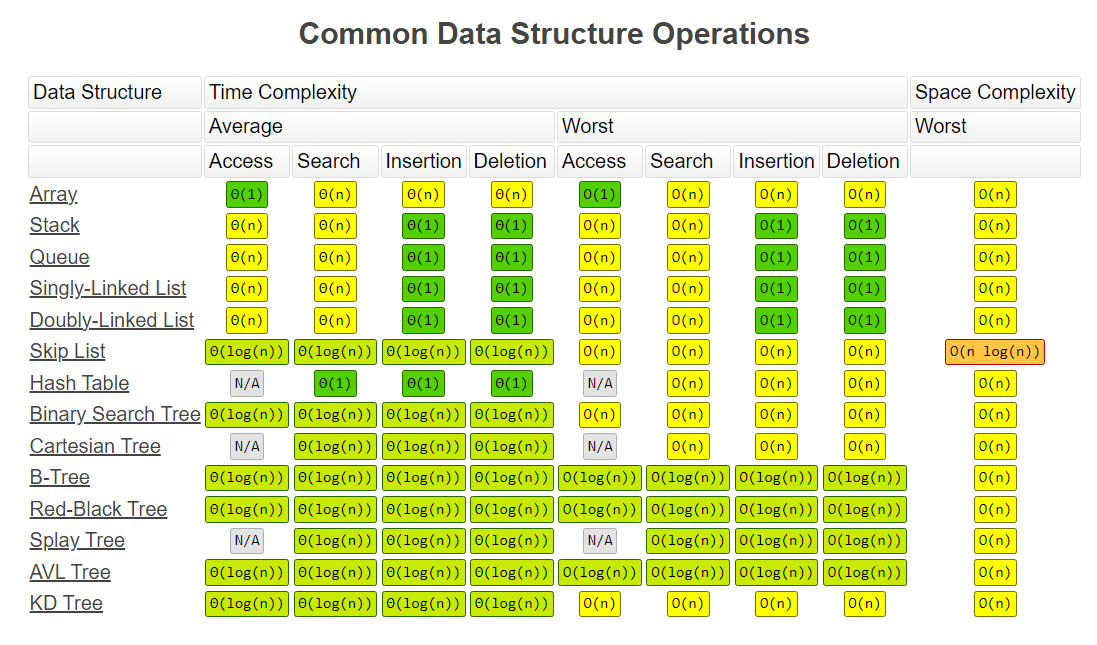Know Thy Complexities! Hi there! This webpage covers the space and time Big-O complexities of common algorithms used in Computer Science. When preparing for technical interviews in the past, I found myself spending hours crawling the internet putting t